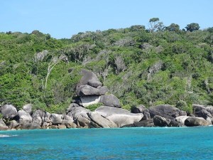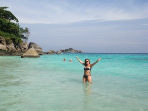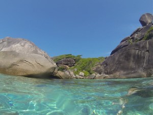 Arrêt de 11h à 13h, déjeuner et snorkelling près des rochers : une eau cristalline comme on ne l’a jamais vu (encore plus marquant que Phi Phi Ley), peu de profondeur, sable blanc et mousseux.