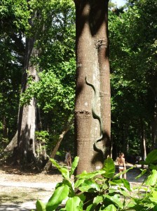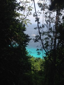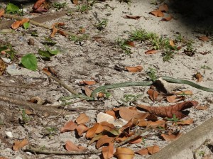 Nous sommes partis vers une petite plage avec moins de monde. Sur le chemin, rencontre avec un serpent et d’énormes chauves-souris.
