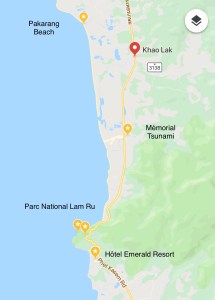 La région de Khao Lak est situé au nord de la presqu’île de Phuket accessible en 1h30 en voiture. C’est un lieu beaucoup plus reposant que Phuket tout proche de Bang Niang, du mémorial du Tsunami, de plusieurs parcs nationaux avec plusieurs cascades au milieu de la fôret. Egalement, c’est le point idéal pour un départ sur les îles similans.