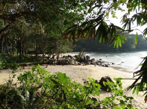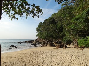 Direction le Parc National de Lam Ru (entrée 200 THB) : petite marche dans la forêt le long de la mer (rencontre avec un iguane et une belle araignée) pour arriver à la plage de Small Sandy Beach. Cette plage est quasiment désertique avec seulement quelques Thaï préparant leur dîner sur la plage, c’est une très jolie petite crique.