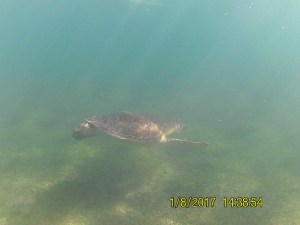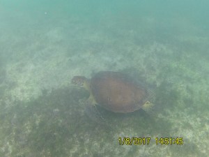 Pour le déjeuner, nous décidons de rejoindre la baie d’Akumal à 5 minutes. On se pose au seul restaurant de la plage le Lol-Ha on Akumal. Puis, on part à la rencontre des tortues de mer. On en voit quand même plusieurs malgré le monde dans l’eau. L’eau est un peu trouble à cause du sable mais la visibilité est assez bonne. Retour à la plage pour nous réchauffer un peu car l’eau est assez fraîche.
