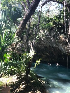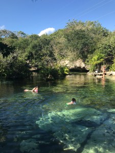 On part pour la suite de notre programme, direction au El Gran Cénoté proche de Tulum. Et là magnifique cénoté, assez grand une partie est recouverte par de la roche. Vraiment top, l’eau y est transparente et fraiche avec pleins de galeries souterraines, mais peu de poissons et avec plusieurs profondeurs (des plongeurs avec bouteille y viennent aussi). Il est 11h-12h donc beaucoup de rayons du soleil traversent l’eau, ce qui donne de magnifiques couleurs, super snorkelling.