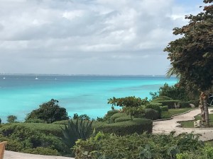 Nous décidons ensuite de louer un scooter (350 pesos pour la journée ce qui est peu cher comparé aux 150 pesos demandés pour 1h de voiturette). Nous descendons vers le sud de l’île. Sur la route, nous repérons la playa de Goraffon (recommandé pour le snorkelling), nous allons jusqu’au Cap Sud : très joli, de grandes falaises qui tombent dans l’océan. Il y a beaucoup de vent donc beaucoup de vagues avec une mer bleue et trop belle.