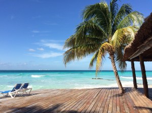 Après la pause déjeuner, un grand soleil fait son apparition, nous retournons à la playa de Goraffon (pas le parc d’attractions), mais une petite plage privée juste à côté : transats, parasols, sable blanc pour 70 pesos (beaucoup moins cher que l’attraction). On commence par du snorkelling, beaucoup de poissons jaunes avec reflets bleus ciels et rayures bleus foncés. Et après bronzette et repos sur les transats jusqu’à 16h.
