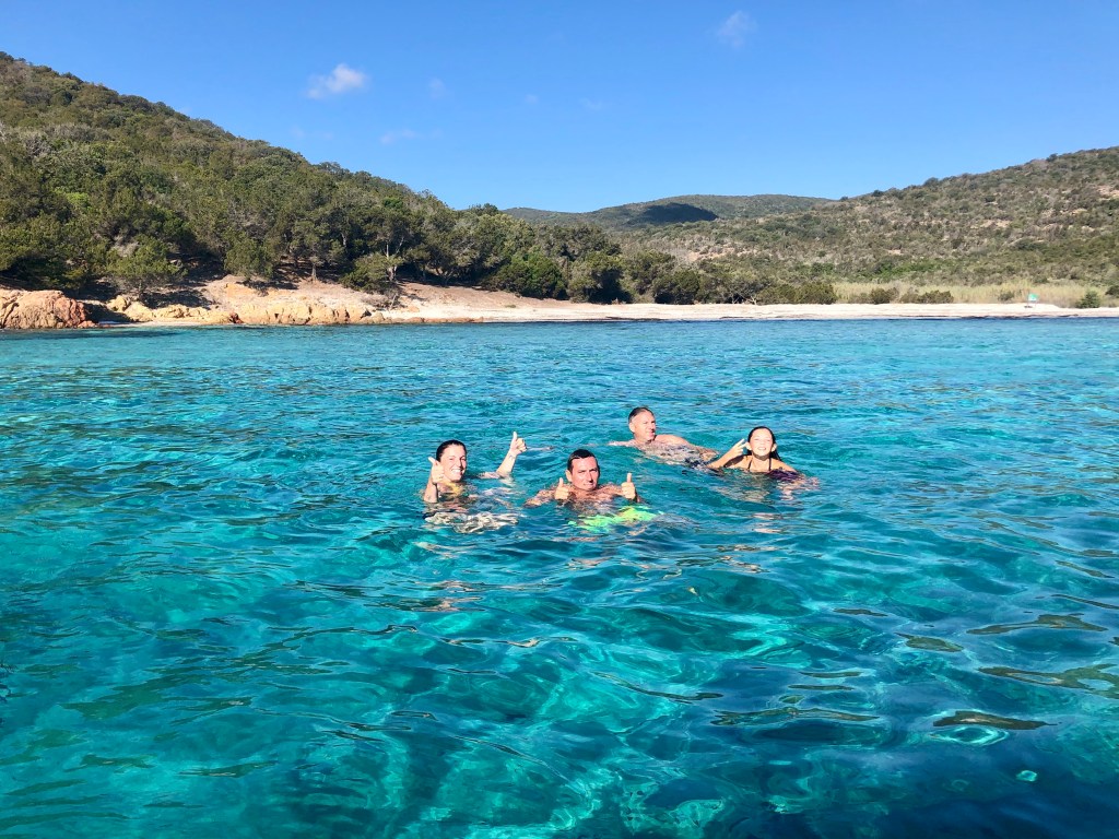 Après un déjeuner de très bonne qualité, on remonte sur le bateau et on retourne tranquillement au port de Porto Vecchio en faisant plusieurs haltes ; notamment un arrêt photo à Capu Biancu et un arrêt snorkelling dans la baie de rondinara.