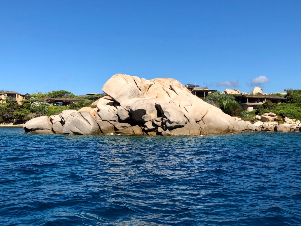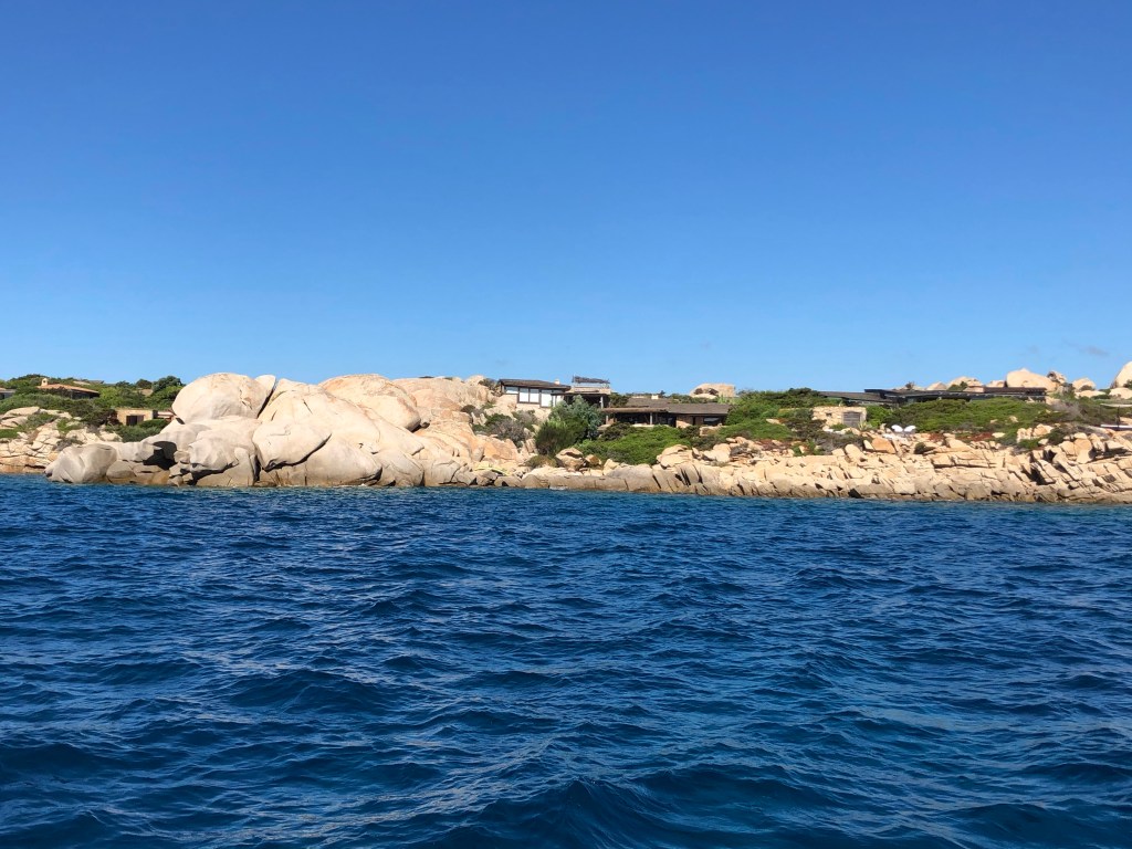 Puis en fin de matinée, nous passons d’abord le long de l’île Cavallo, surnommée l’île des Milliardaires. En effet sur cette île une centaine de villas plutôt bien intégrées au paysage (20 millions d’euros minimum pour s’y installer), 3 restaurants et 1 seul hôtel.
