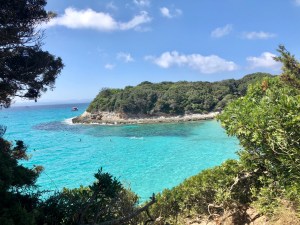 Comme cette plage se trouve dans un golfe, l’eau est protégée du vent donc pas de vagues !