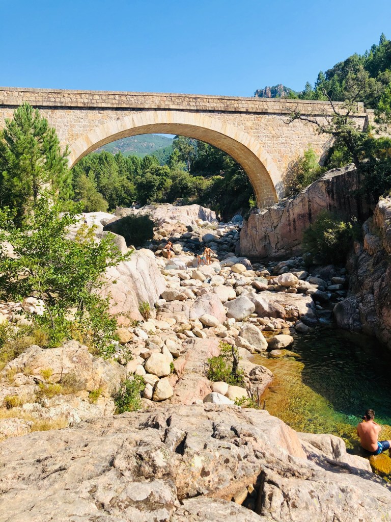 Afin d’être plus tranquille, nous avons continué sur un sentier pour rejoindre le « Pont de la rivière Le Cavu », nous y avons croisé quelques personnes mais vraiment nous étions tranquille (et en plein mois d’août).