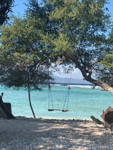 On va au port pour prendre un public boat en direction de Gili Meno pour environ 15 minutes de traversée. On remonte la côte est en allant vers le nord. Il fait tellement chaud que l’on se pose tout nord-est de l’île (proche du « Turtles Point » que l’on avait fait en plongée). On fait un peu de snorkelling et repos pendant 1h30 environ sur le bord de la plage.