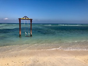 On loue un vélo à l’hôtel (100k pour 2 vélos pour 6h, cher mais on cherchera ailleurs plus tard). On fait le tour de l’île en vélo en commençant par le sud. De très beaux endroits se succèdent : les hôtels, les zones abandonnées, les zones en travaux, les petits bars, les plages. On se fait un petit arrêt tout au nord de l’île pour faire du snorkelling, beaucoup de courant mais pleins de poissons.