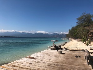 Gili T. est la plus animée avec une rue principale, qui fait le tour complet de l’île à pied, en vélo ou en chariotte tirée par un cheval. En effet, il n’y a pas de véhicule motorisé sur l’île.
