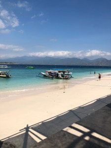 Retour sur Gili T où on a eu quelques frayeurs sur le bateau à cause de 2-3 grosses vagues (on s’est carrément allongé sur le toit du bateau).