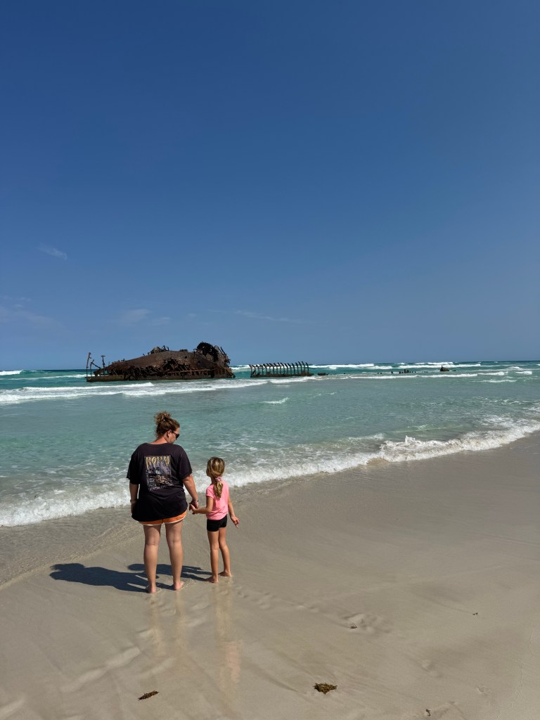 Ensuite, on remonte dans le 4*4, on reprend la route à travers les dunes, puis le désert aride pour rejoindre la plage de Cabo Santa Maria et découvrir cette épave. Pendant ce trajet, ça secoue vraiment beaucoup, on ne croise que quelques quads par ci par là. Pour arriver sur une plage déserte sur plusieurs kilomètres.